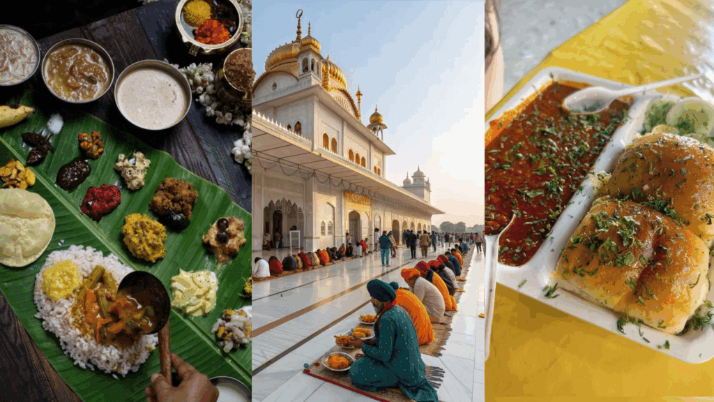 Enjoy a banana-leaf thali in Kerala, try community langar at Amritsar’s Golden Temple, or share street food at Mumbai’s Chowpatty Beach.