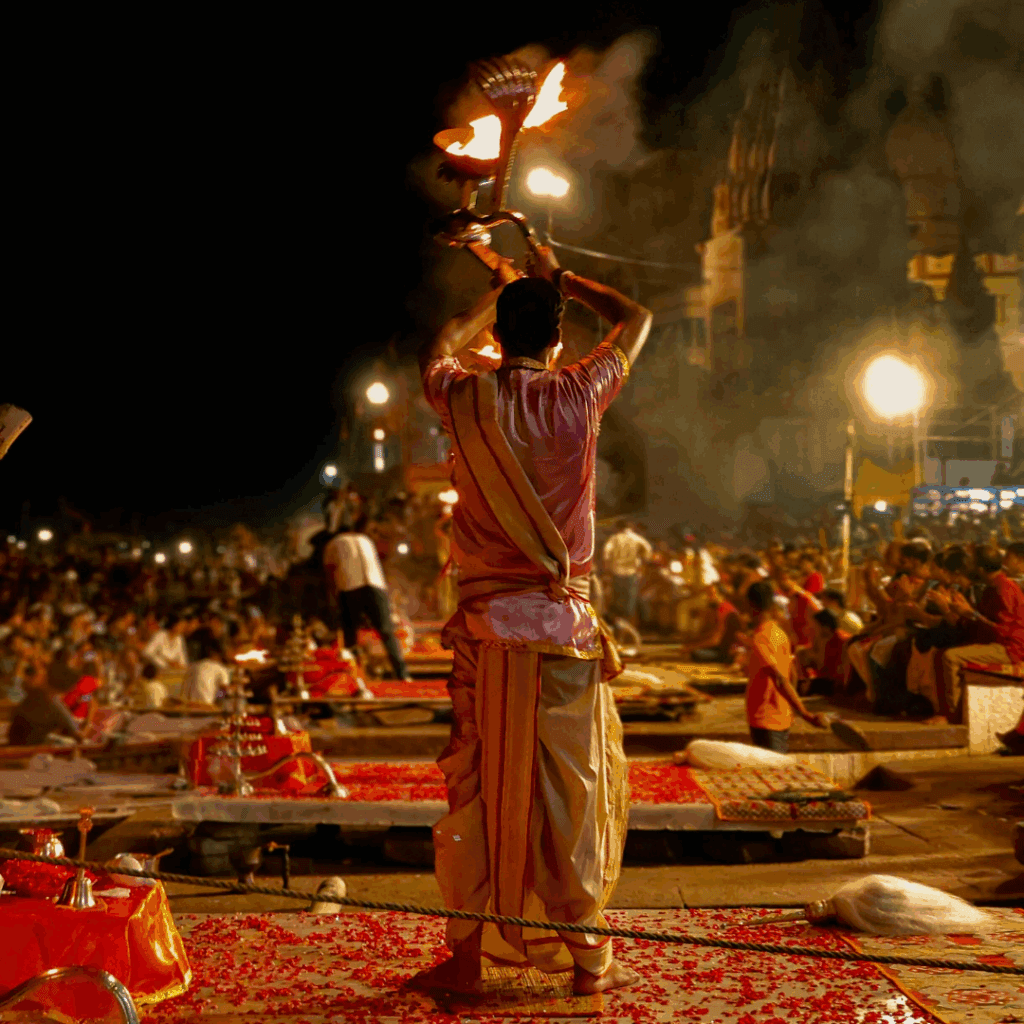 Watch evening aarti at Varanasi’s Assi Ghat or Ganga Ghats in Rishikesh for this ritual on a grand, shared scale.