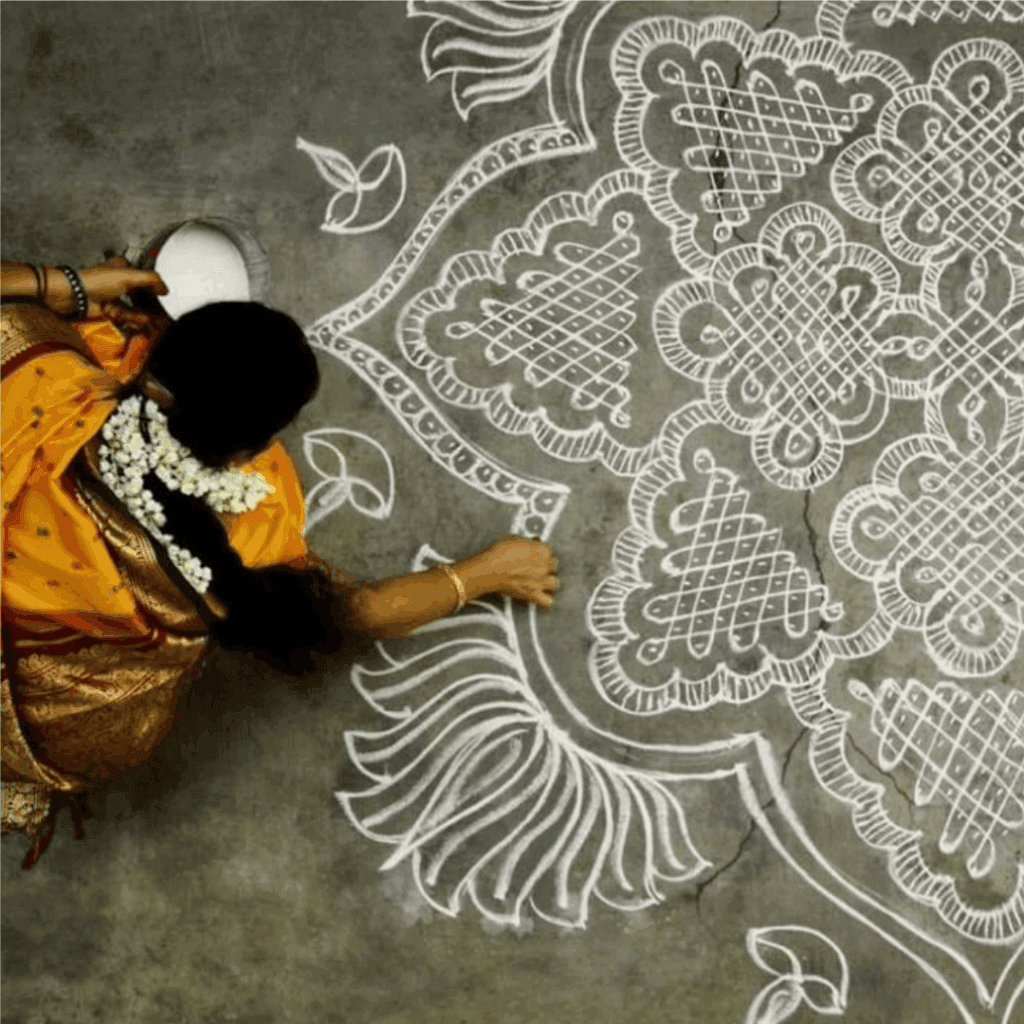 Walk through South Indian towns like Madurai or Coimbatore at dawn to see fresh rangoli at every doorstep.